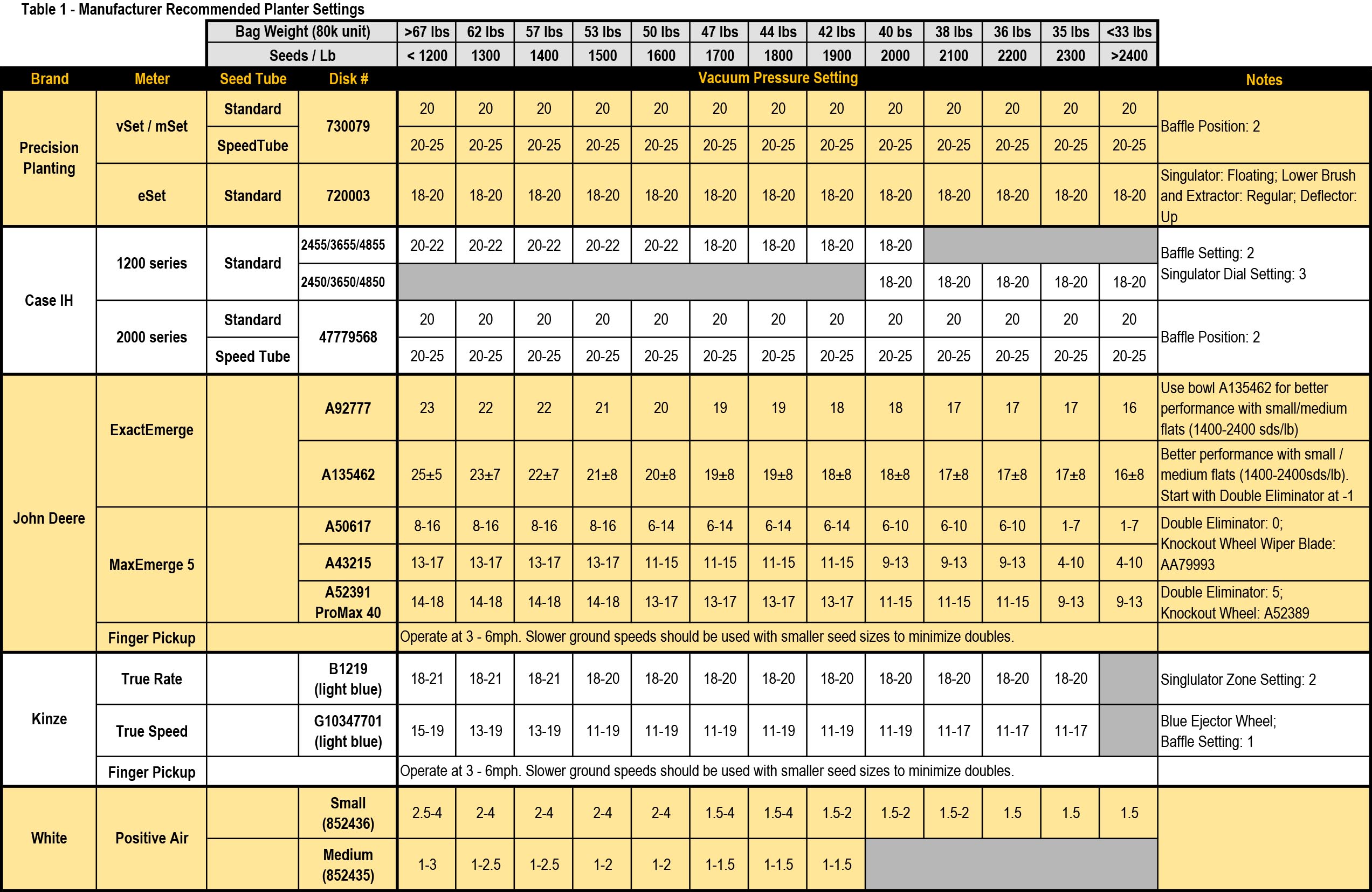 - Advanced seed monitors improve the ease of real-time vacuum adjustment. Manufacturer-recommended vacuum settings can be found in Table 2.