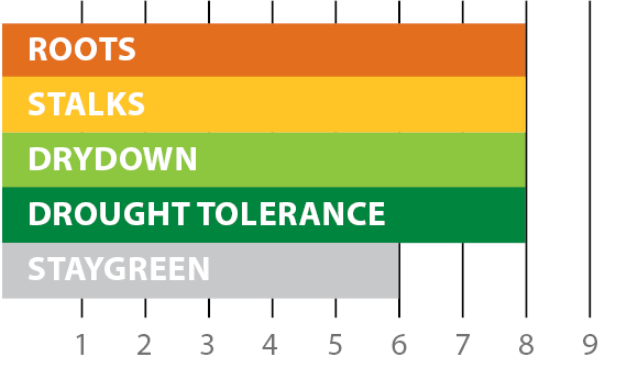 Maximize the opportunity to reach new yield levels by planting at higher populations. Good north to south movement. Solid choice for continuous corn. Good late harvest option.