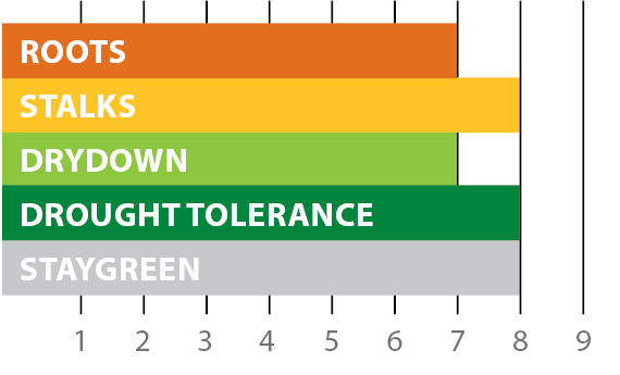 Excellent choice across soil types and environments. Late-season plant integrity makes this hybrid an excellent choice for late harvest.